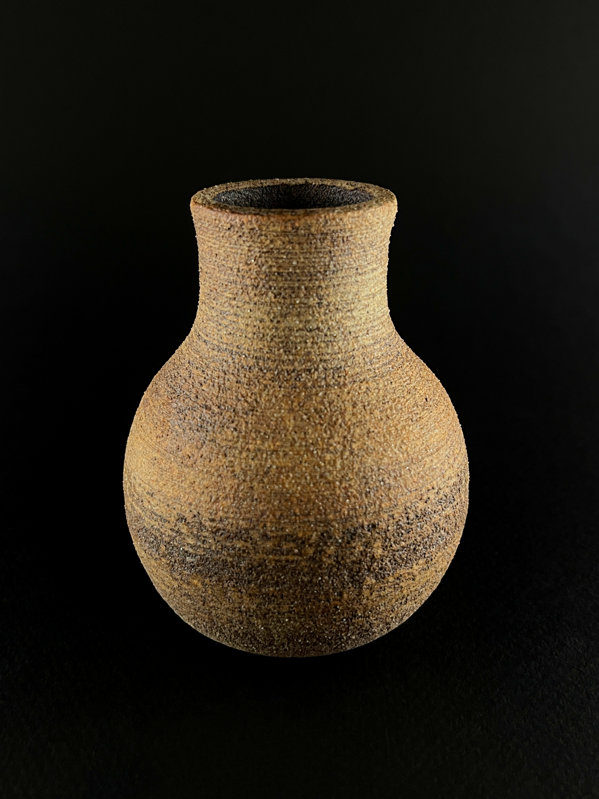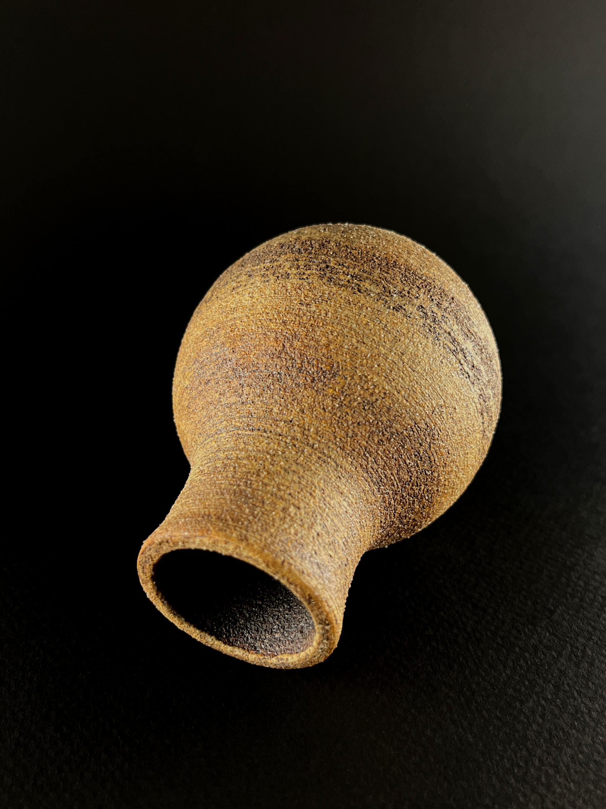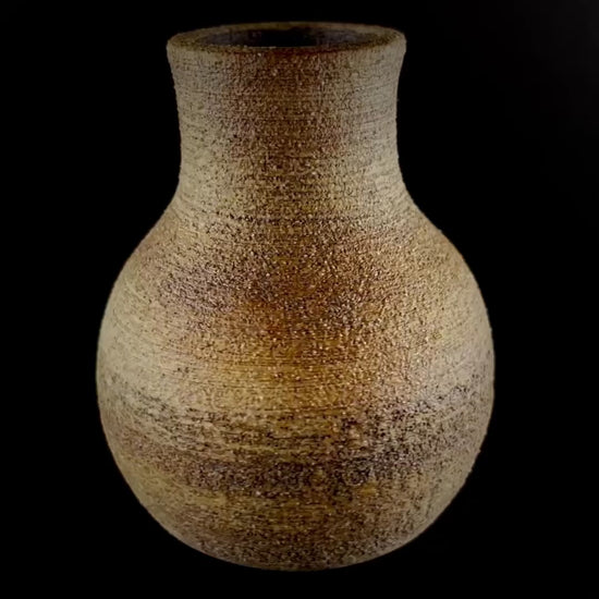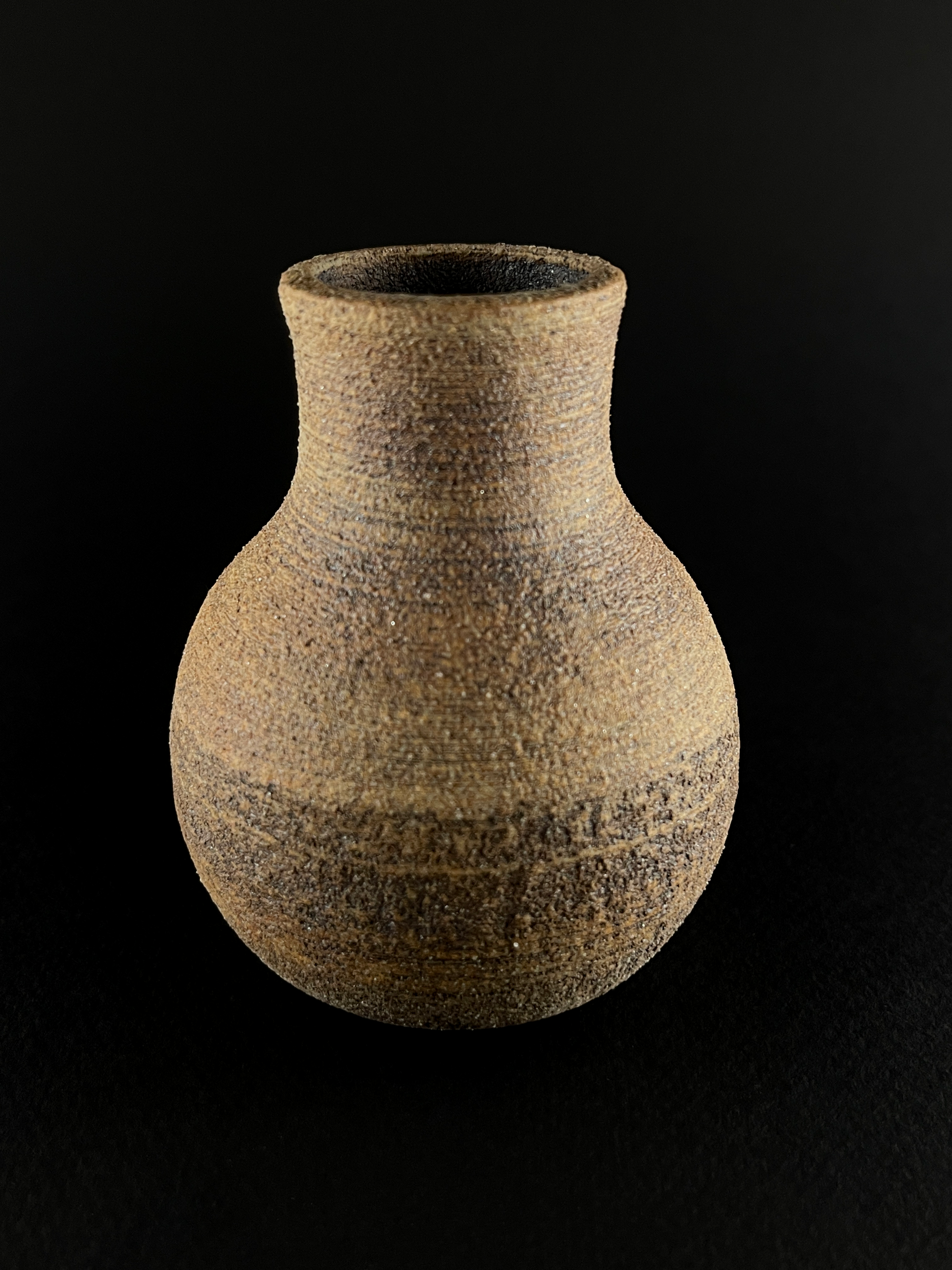Small hand thrown bottle stained with red iron oxide.