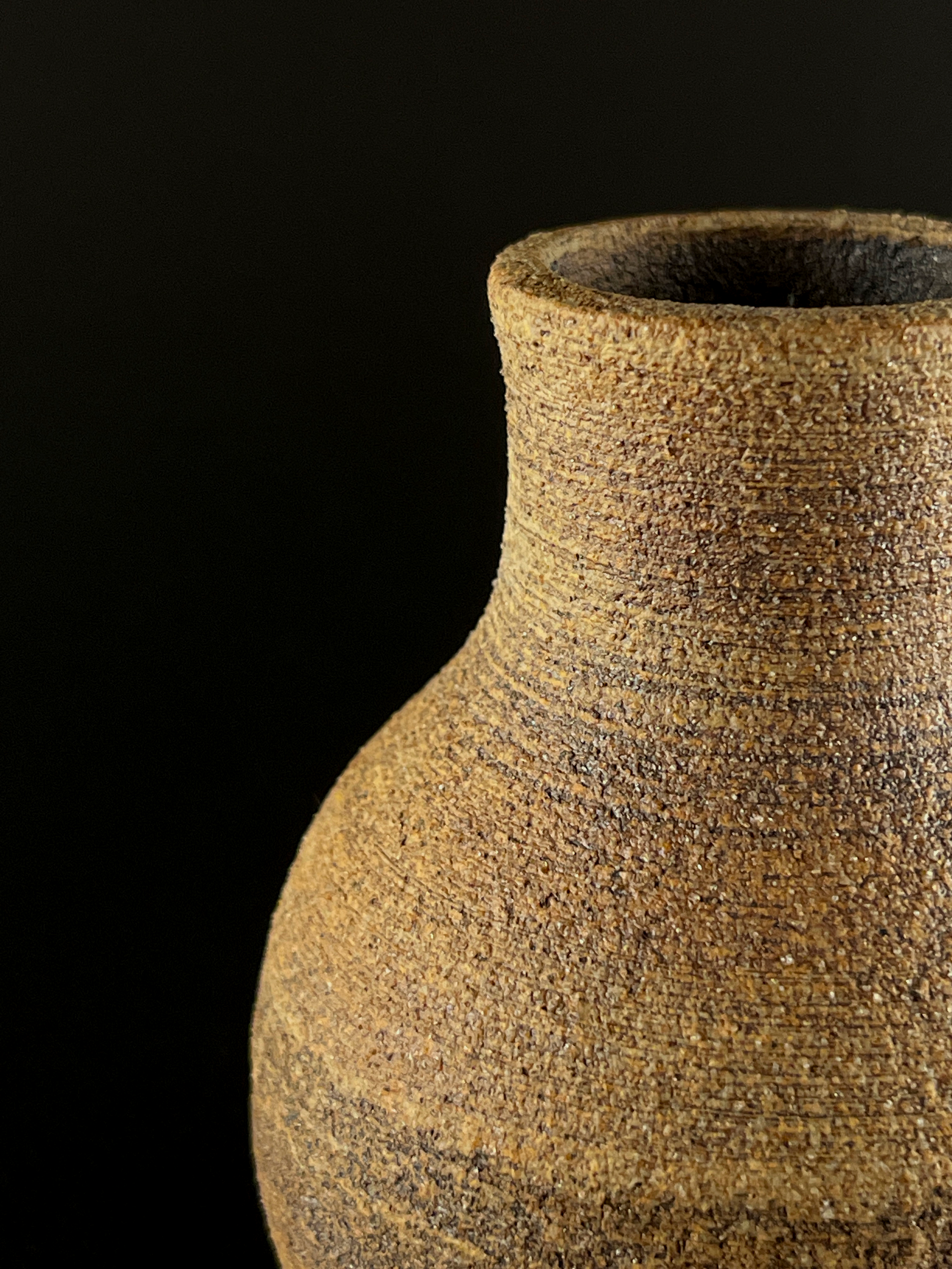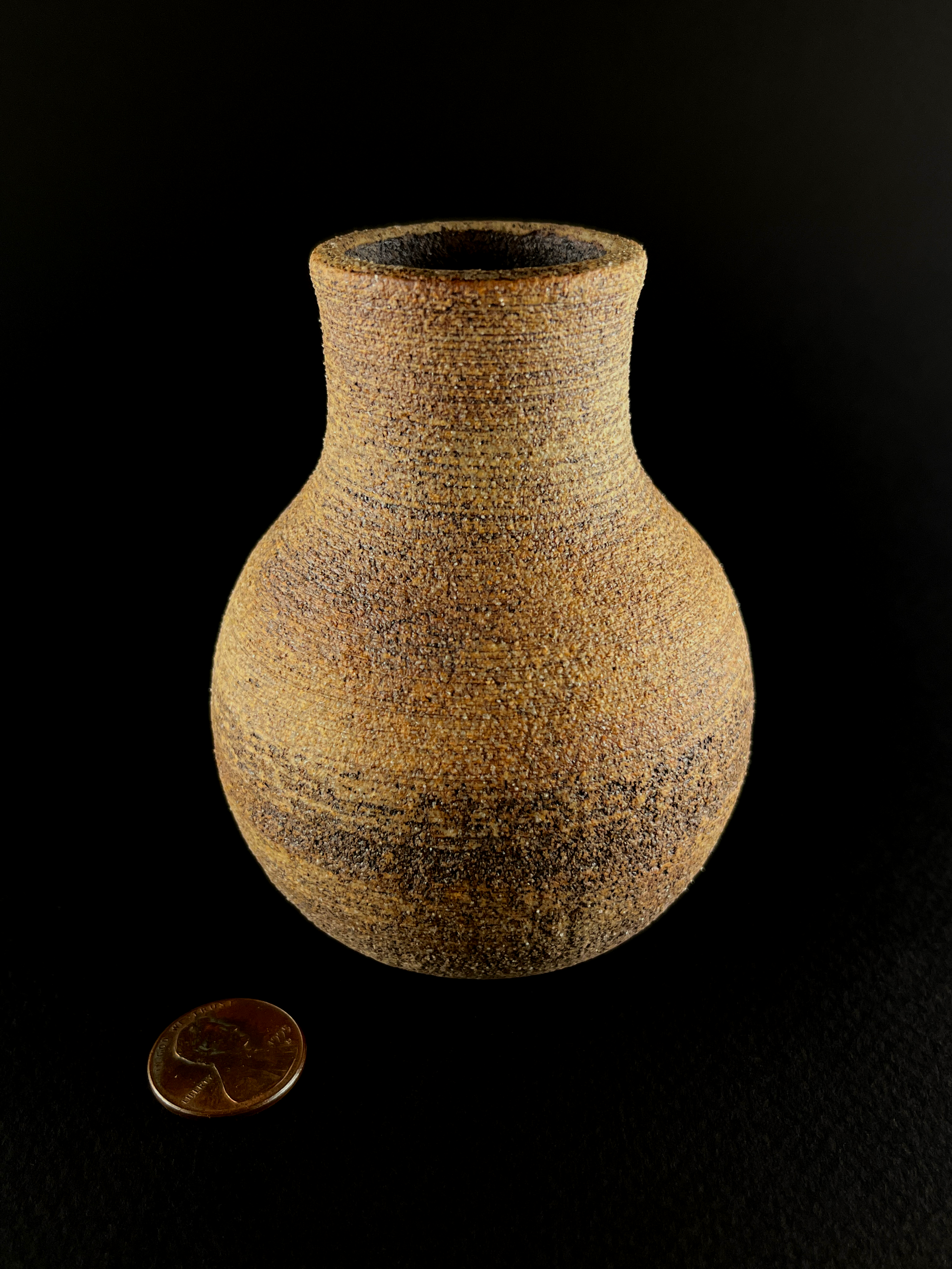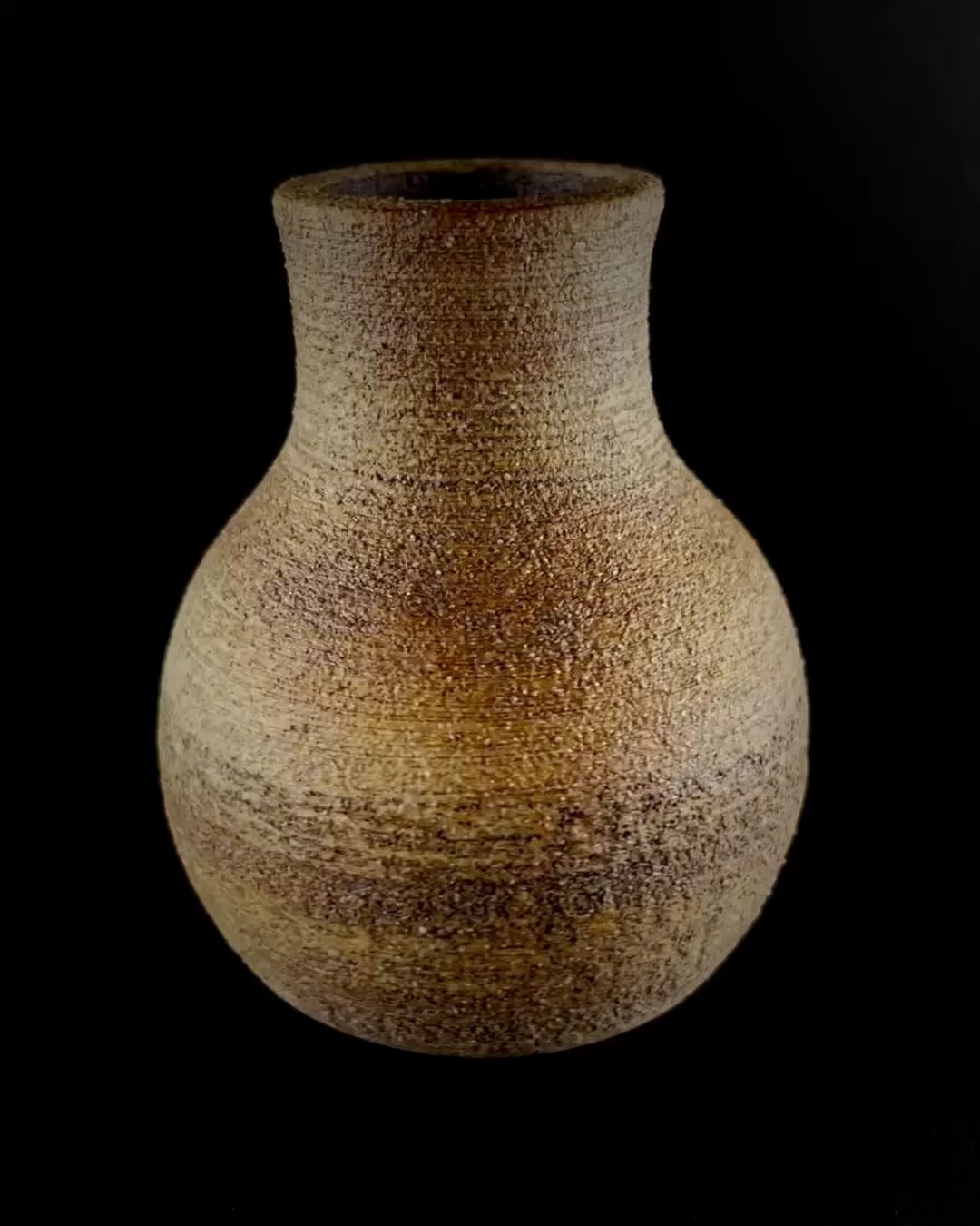 Small hand thrown bottle stained with red iron oxide.